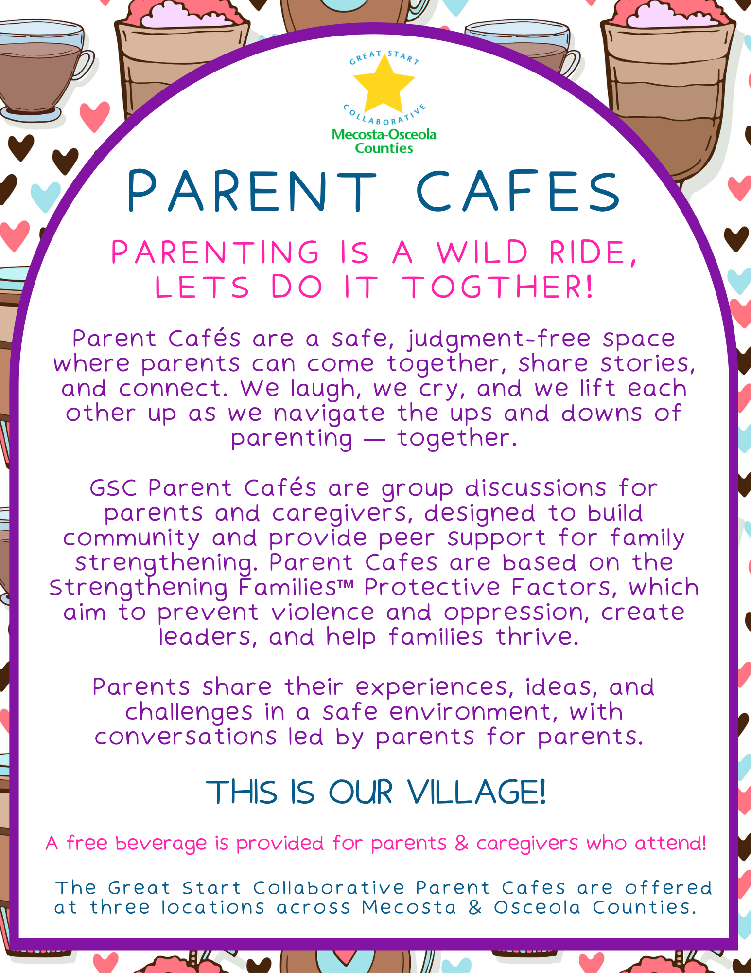 Parent Cafes are a time for parents to connect over coffee where together we can openly share in the struggles and celebrate the triumphs of parenting.